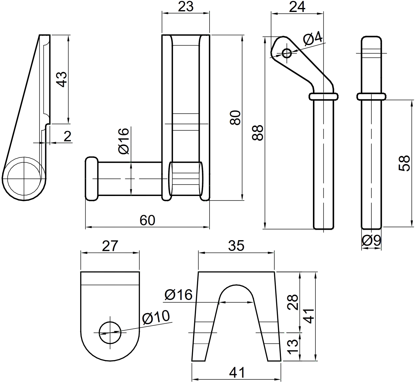 Stosowany w przyczepkach / burtach jako zawias umożliwiający otwieranie dołem burty lub nadstawki oraz szybki demontaż burty/nadstawki.
