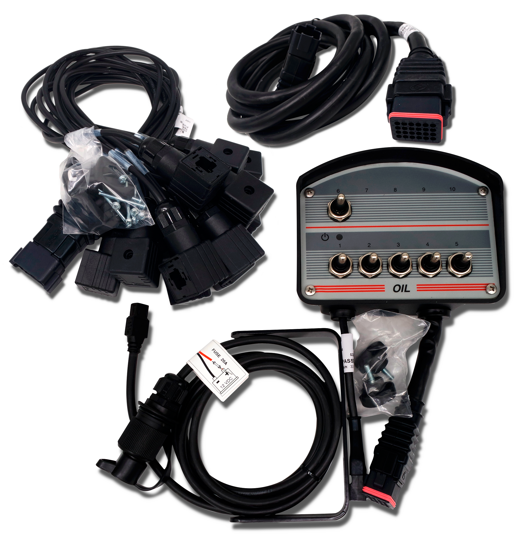 W zestawie komplet przewodów elektrycznych potrzebnych do zasilania panelu oraz połączenia go z rozdzielaczem hydraulicznym. Dodatkowo zestaw posiada przewód przedłużający łączność o 3 metrów. Na naszych pozostałych aukcjach znajdą Państwo pozostałe akcesoria pasujące do kompletu.