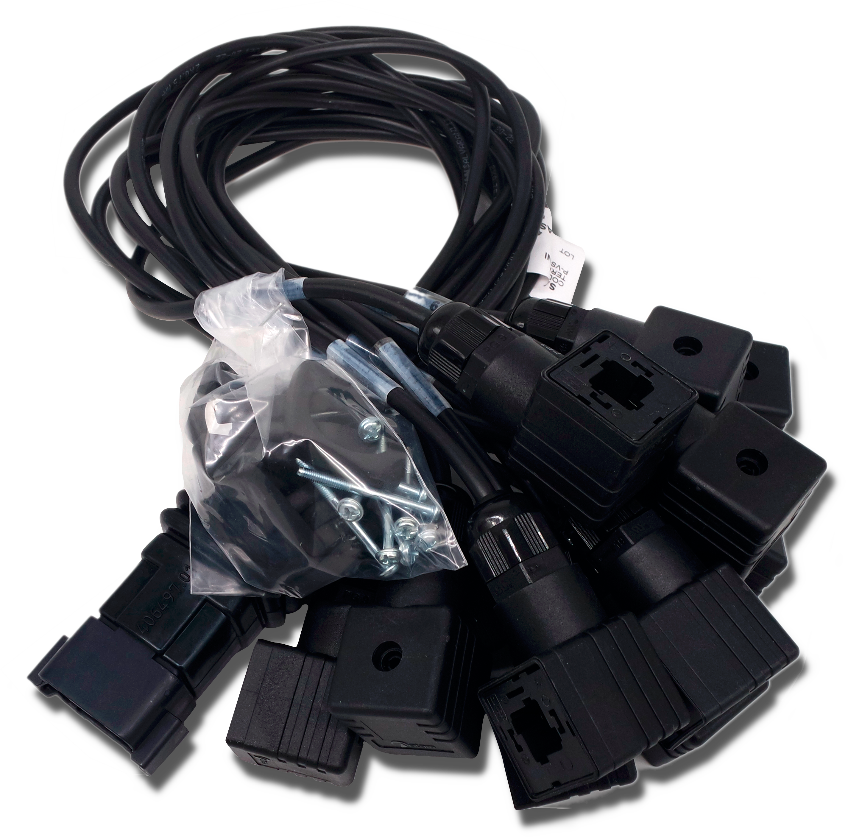 SZEŚCIOMA PRZYCISKAMI, WIĄZKĄ PRZEWODÓW DO ROZDZIELACZA HYDRAULICZNEGO, KABLEM PRZEDŁUŻAJĄCYM 9M ORAZ PRZEWODEM ZASILAJĄCYMW zestawie komplet przewodów elektrycznych potrzebnych do zasilania panelu oraz połączenia go z rozdzielaczem hydraulicznym. Dodatkowo zestaw posiada przewód przedłużający łączność o 9 metrów. Na naszych pozostałych aukcjach znajdą Państwo pozostałe akcesoria pasujące do kompletu.