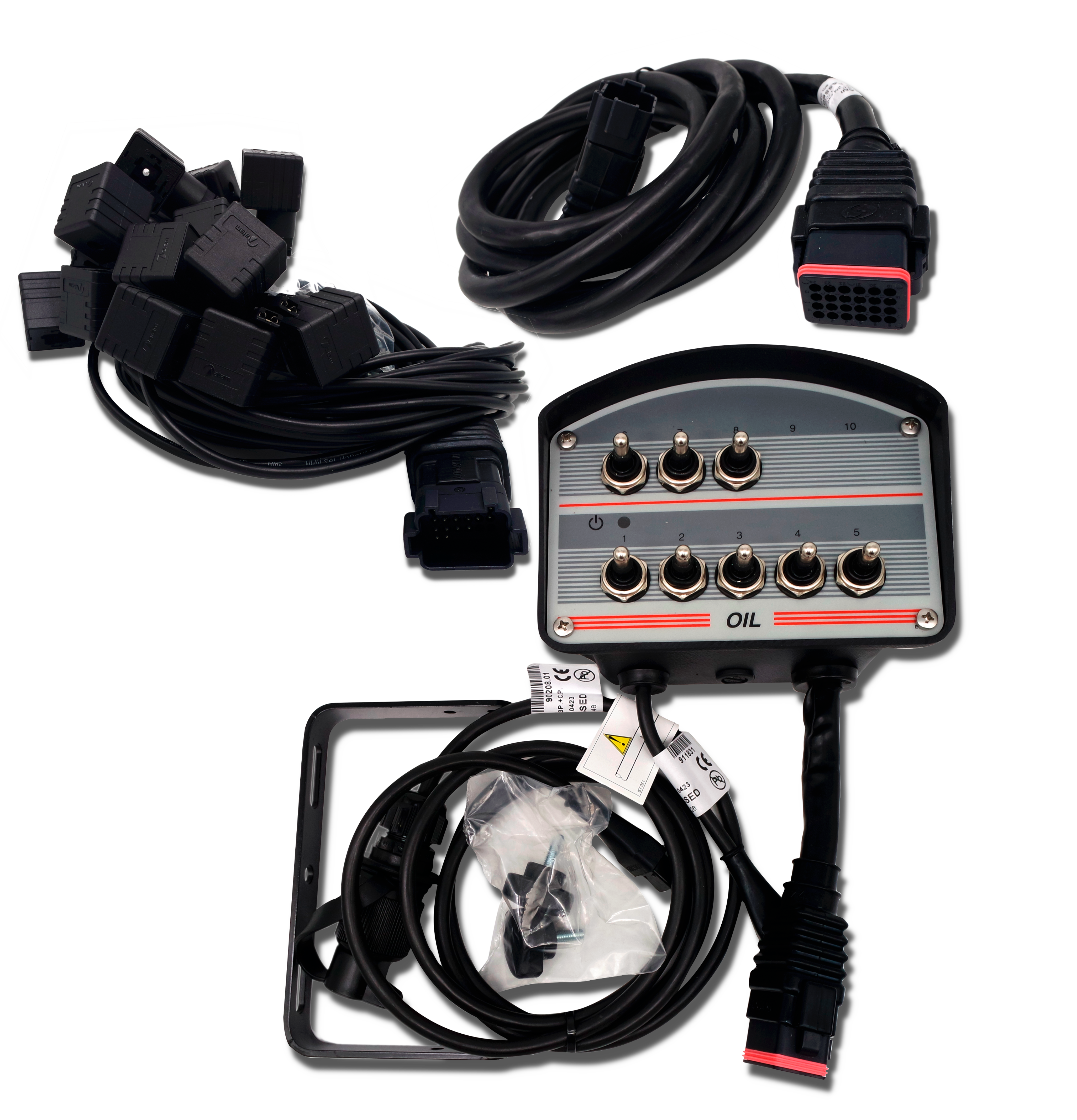 W zestawie komplet przewodów elektrycznych potrzebnych do zasilania panelu oraz połączenia go z rozdzielaczem hydraulicznym. Dodatkowo zestaw posiada przewód przedłużający łączność o 3 metrów. Na naszych pozostałych aukcjach znajdą Państwo pozostałe akcesoria pasujące do kompletu.