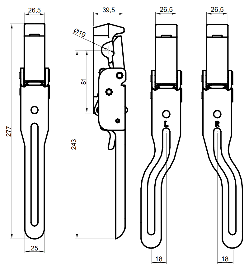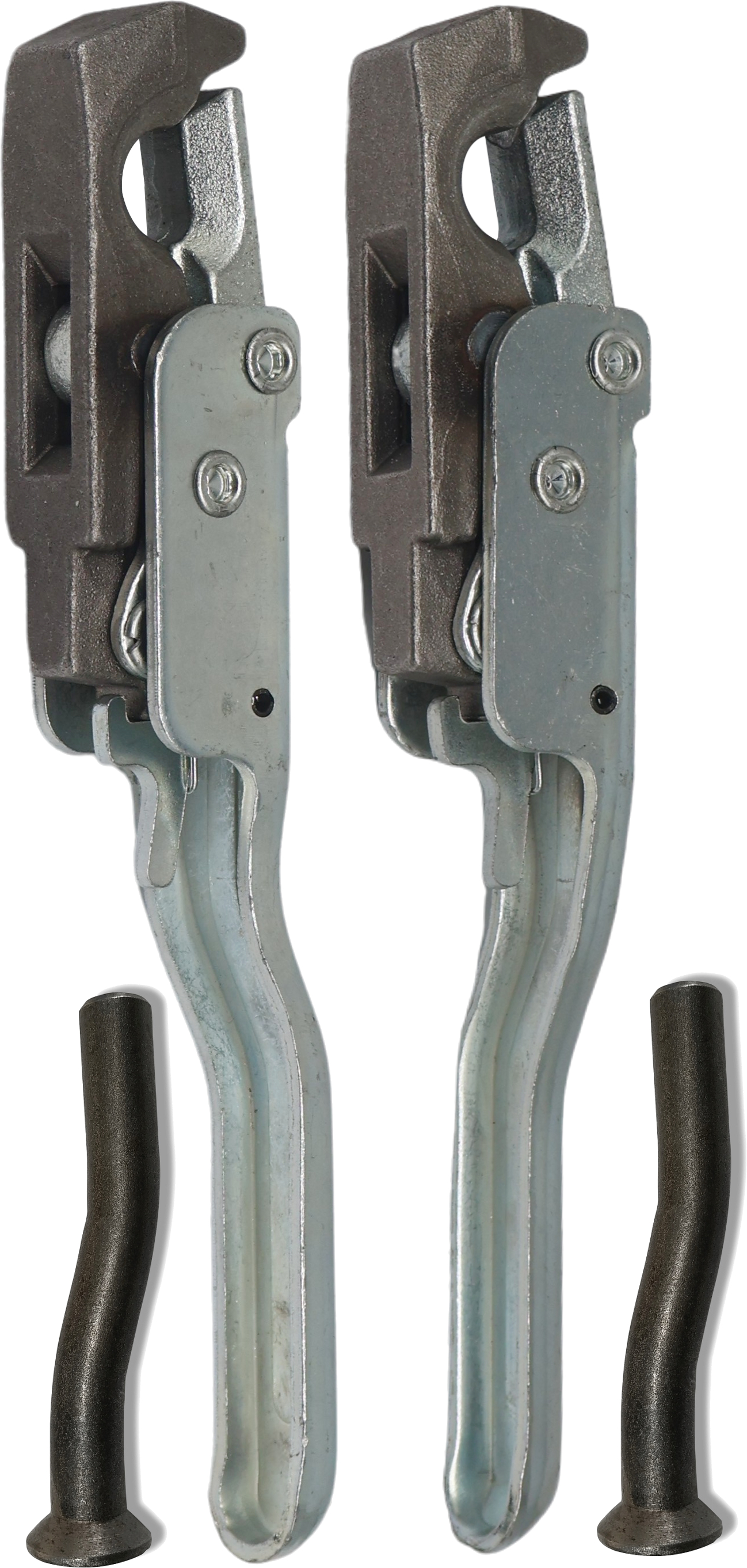 sworzniami WYGIĘTYMIStosowany w przyczepach i skrzyniach ładunkowych jako zawias przy dolnym otwieraniu burty lub jako spinacz czy zamek przy górnym otwieraniu.
