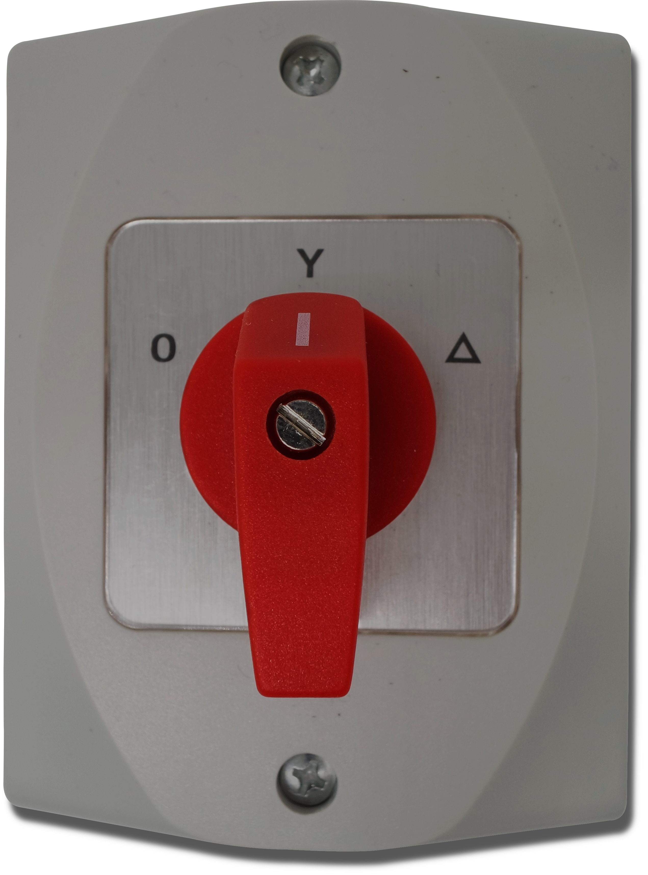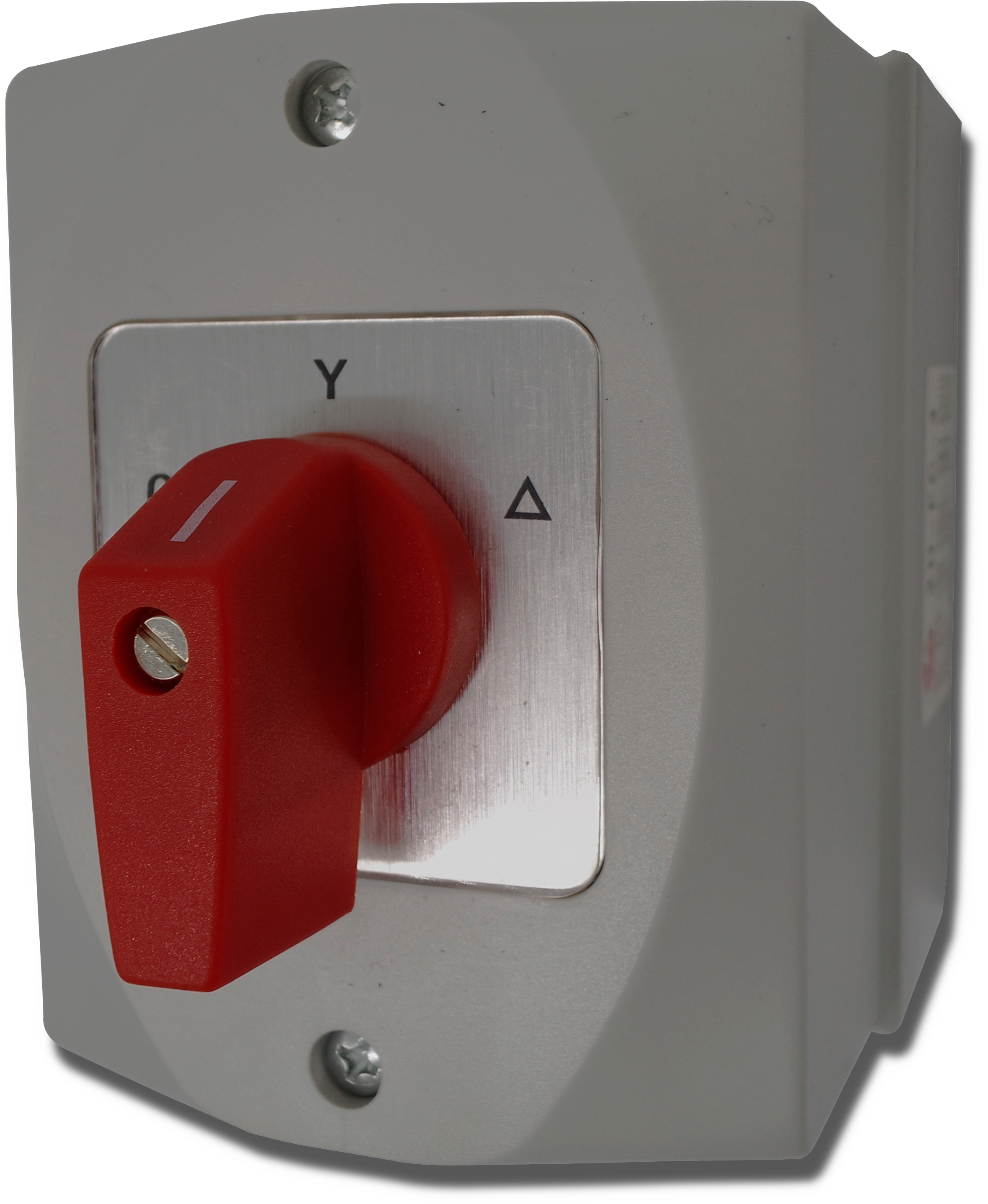 Wysokiej jakości kompletny przełącznik gwiazda-trójkąt w obudowie. Typowo stosowany przy silnikach elektrycznych.