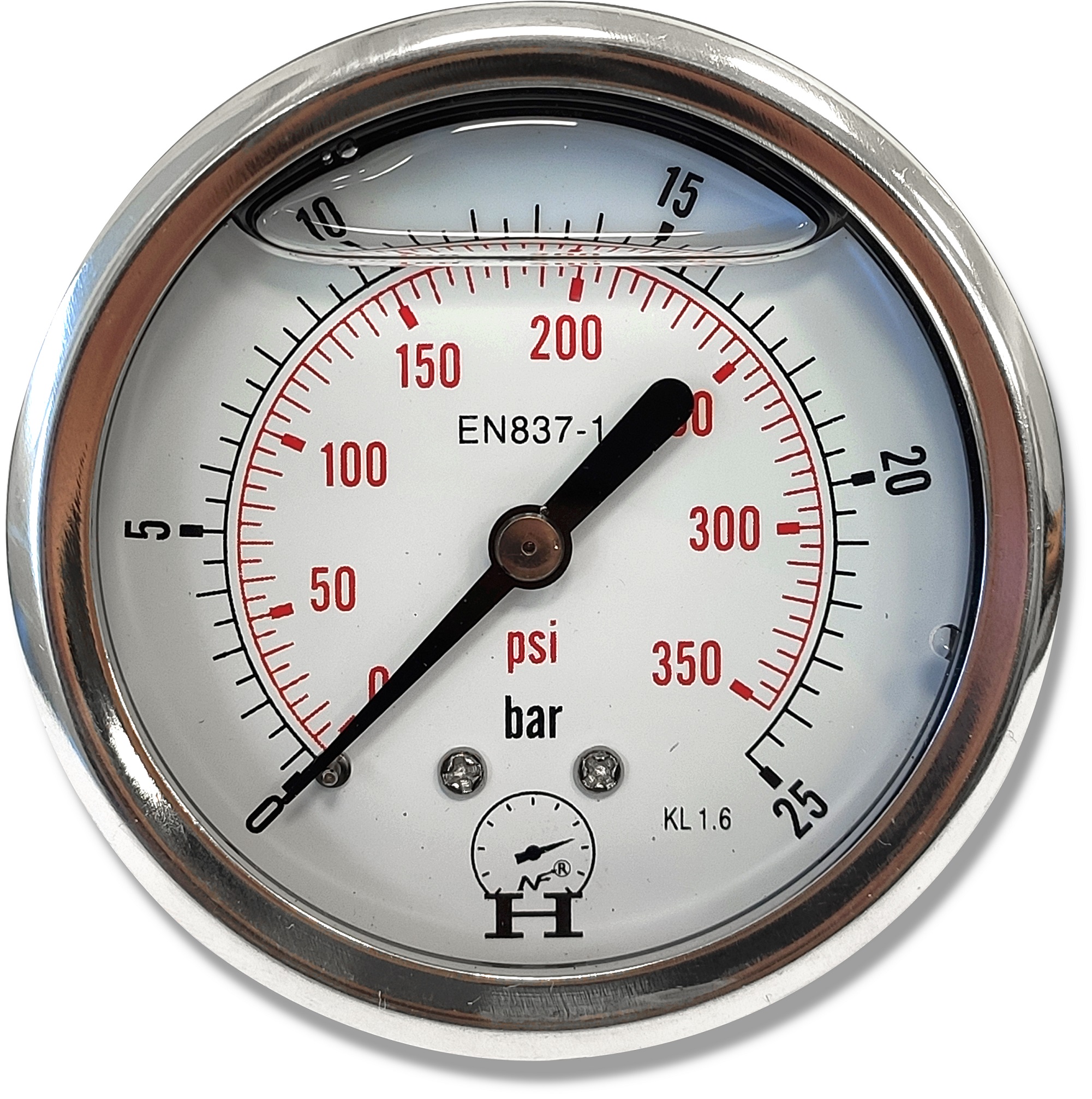 Manometr wewnątrz wypełniony gliceryną. Manometr glicerynowy różni się od standardowych manometrów wnętrzem wypełniony gliceryną, która zabezpiecza i chroni wskazówkę przed wibracjami i drganiami.