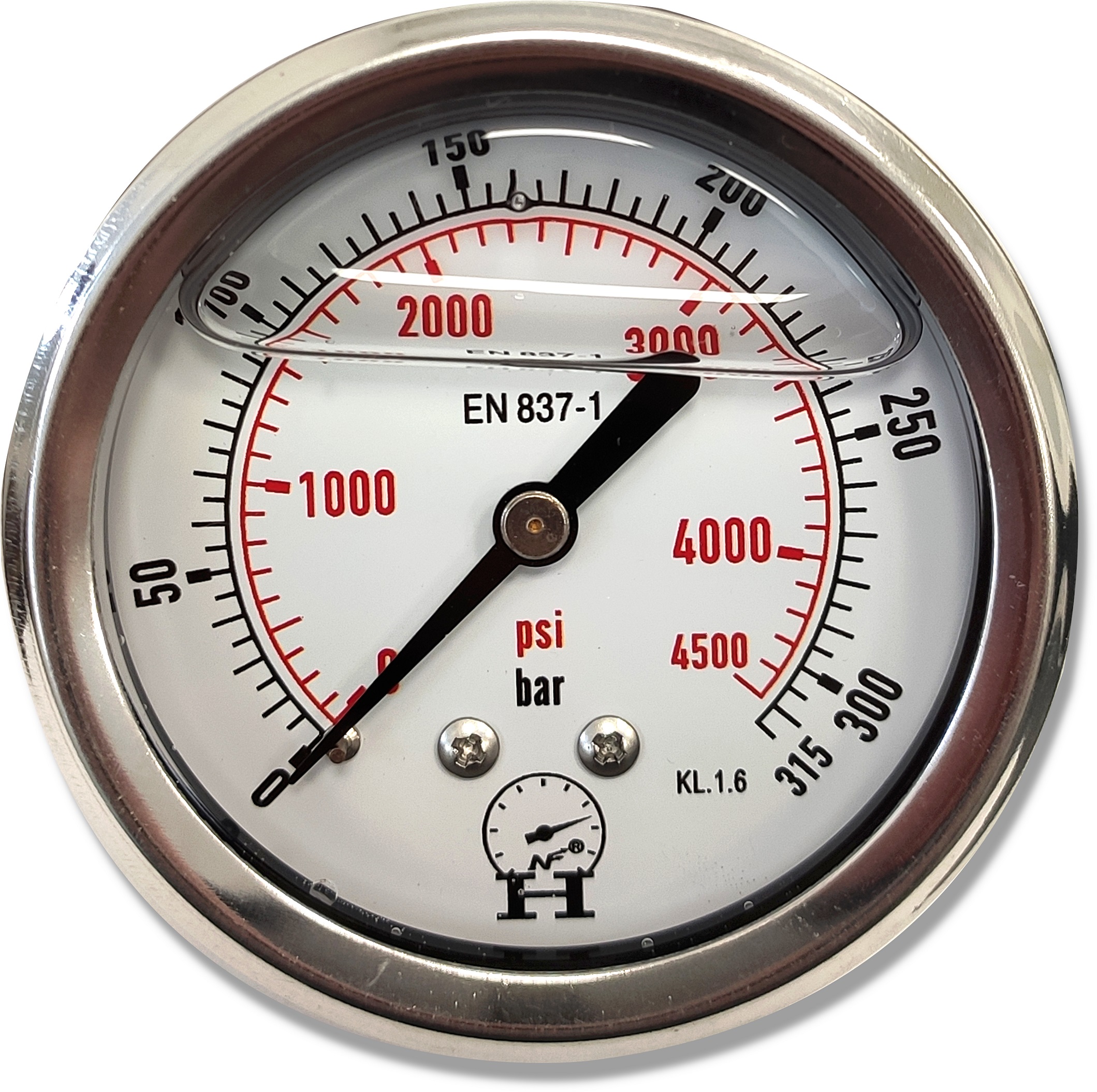 Manometr wewnątrz wypełniony gliceryną. Manometr glicerynowy różni się od standardowych manometrów wnętrzem wypełniony gliceryną, która zabezpiecza i chroni wskazówkę przed wibracjami i drganiami.