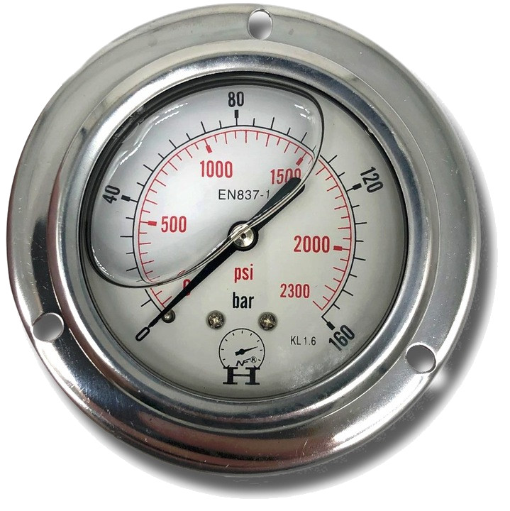 Manometr wewnątrz wypełniony gliceryną. Manometr glicerynowy różni się od standardowych manometrów wnętrzem wypełniony gliceryną, która zabezpiecza i chroni wskazówkę przed wibracjami i drganiami.