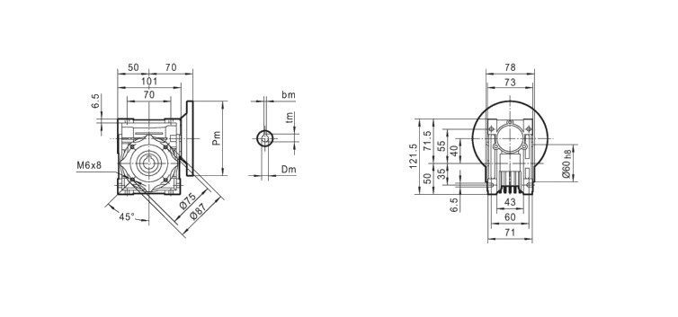 Dedykowany do redukowania napędu silników elektrycznych MS 63 z kołnierzem mocującym (B5) oraz wałkiem napędowym Φ11 mm.