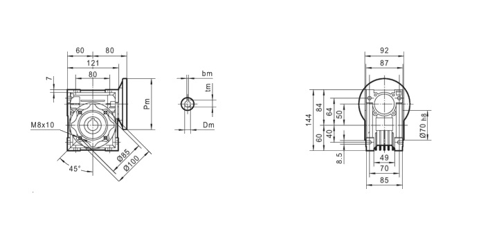 Dedykowany do redukowania napędu silników elektrycznych MS 71 z kołnierzem mocującym (B5) oraz wałkiem napędowym Φ14 mm.