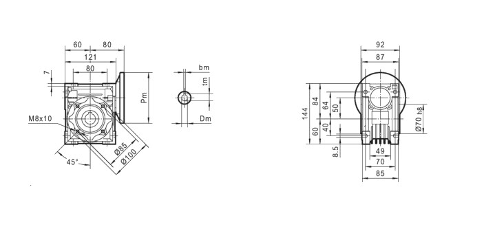 Dedykowany do redukowania napędu silników elektrycznych MS 71 z kołnierzem mocującym (B5) oraz wałkiem napędowym Φ14 mm.