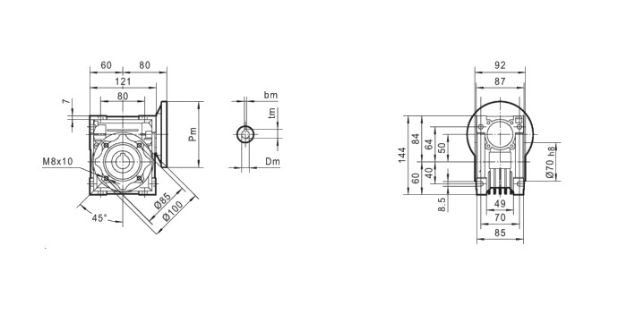 Dedykowany do redukowania napędu silników elektrycznych MS 71 z kołnierzem mocującym (B5) oraz wałkiem napędowym Φ14 mm.