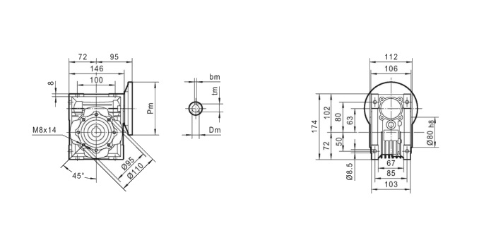 Dedykowany do redukowania napędu silników elektrycznych MS 71 z kołnierzem mocującym (B5) oraz wałkiem napędowym Φ14 mm.
