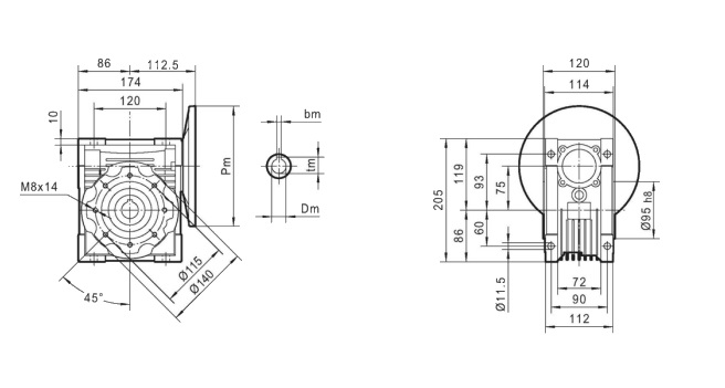 Dedykowany do redukowania napędu silników elektrycznych MS 71 z kołnierzem mocującym (B5) oraz wałkiem napędowym Φ14 mm.
