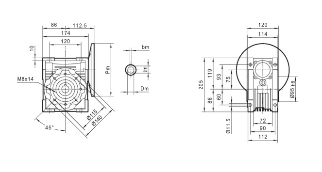 Dedykowany do redukowania napędu silników elektrycznych MS 90 z kołnierzem mocującym (B5) oraz wałkiem napędowym Φ24 mm.