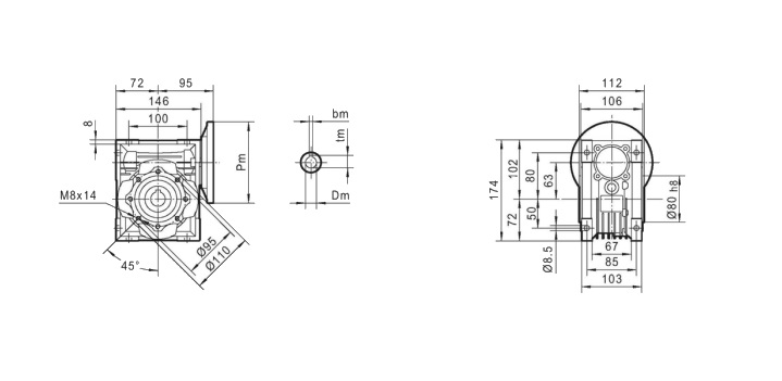 Dedykowany do redukowania napędu silników elektrycznych MS 90 z kołnierzem mocującym (B5) oraz wałkiem napędowym Φ24 mm.