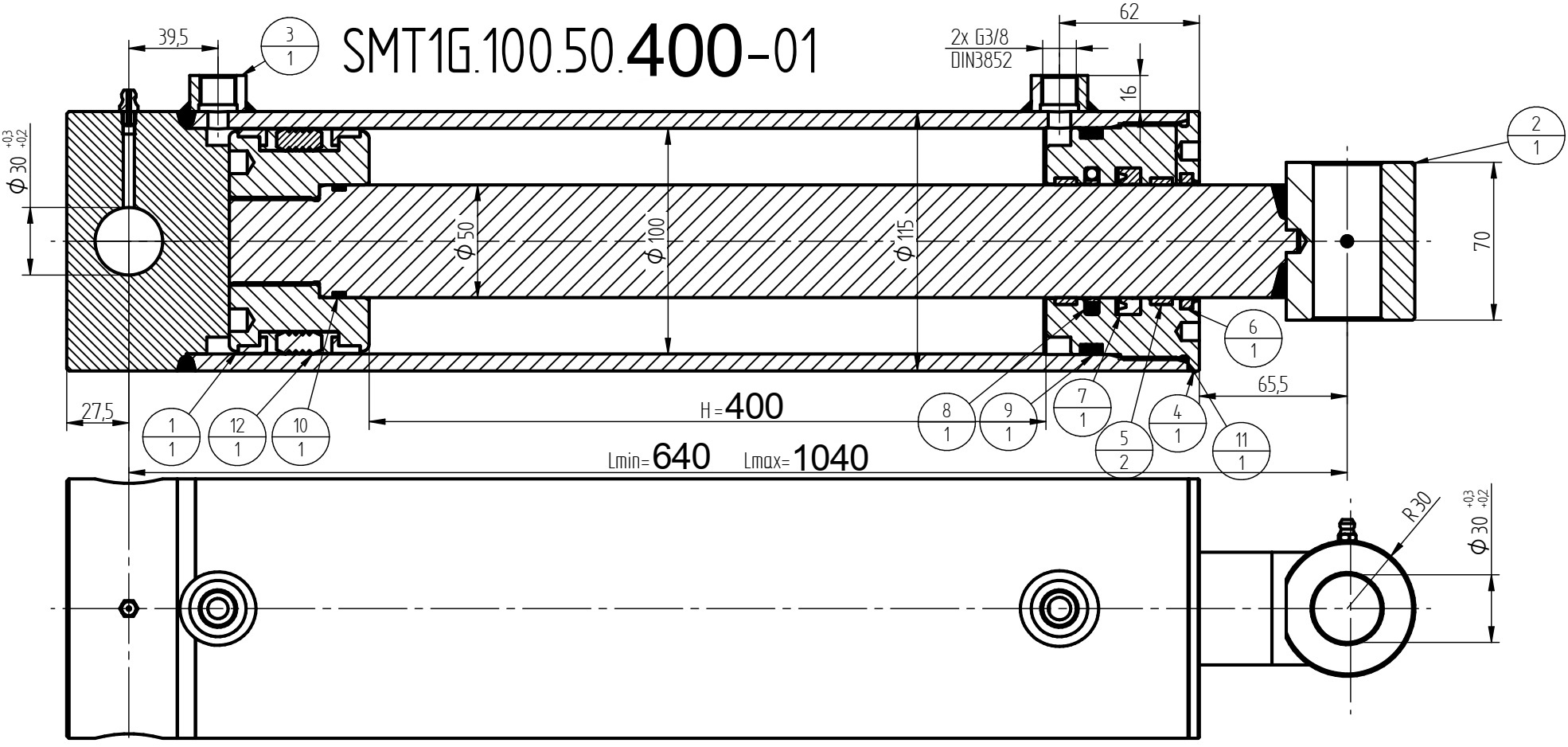 Całkowita długość siłownika po rozłożeniu mm: 1040mm