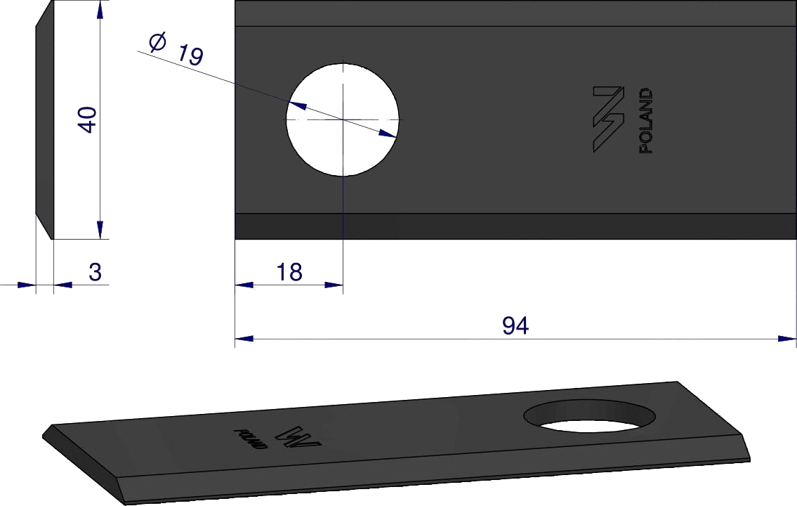 Noże do kosiarki rotacyjnej polskiego producenta Waryński, pasują do różnych modeli kosiarek: