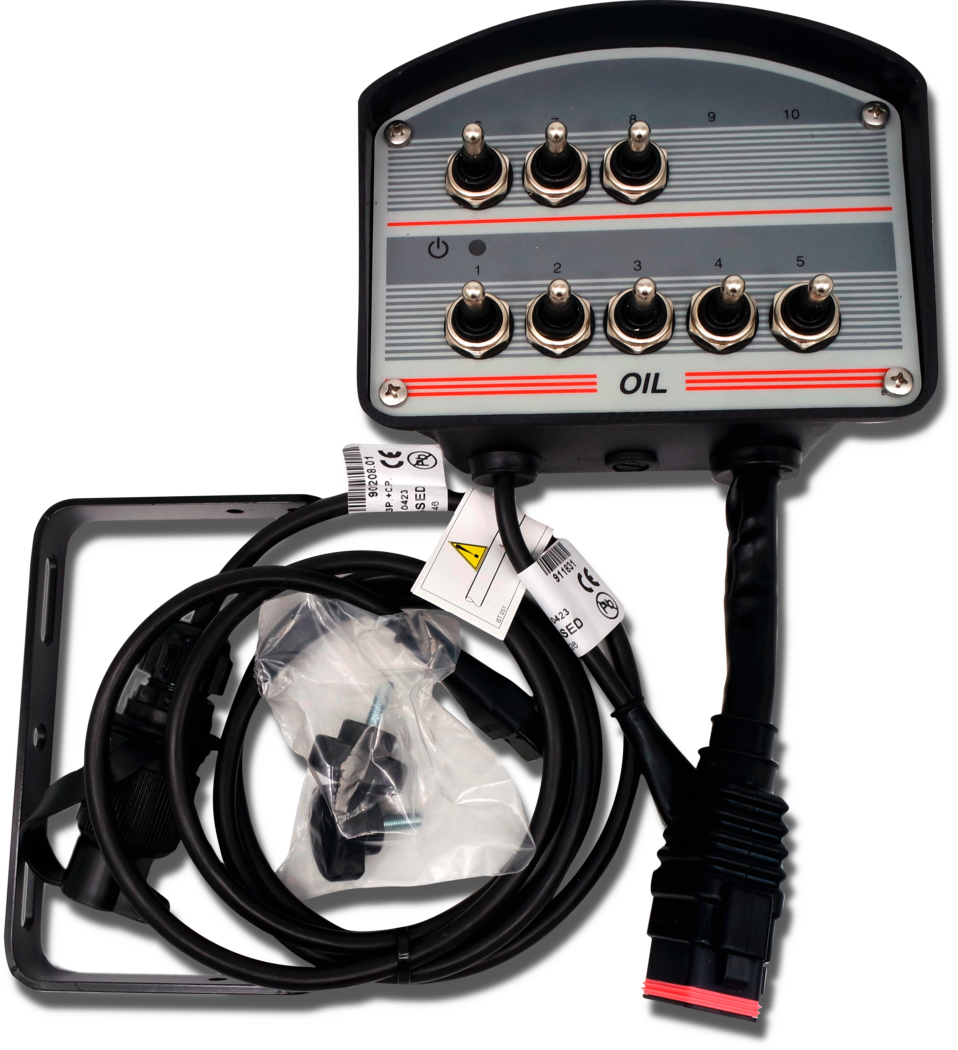 Wszystkie włączniki góra - dół z automatycznym centrowaniem (1-0-2) bez zatrzasku.