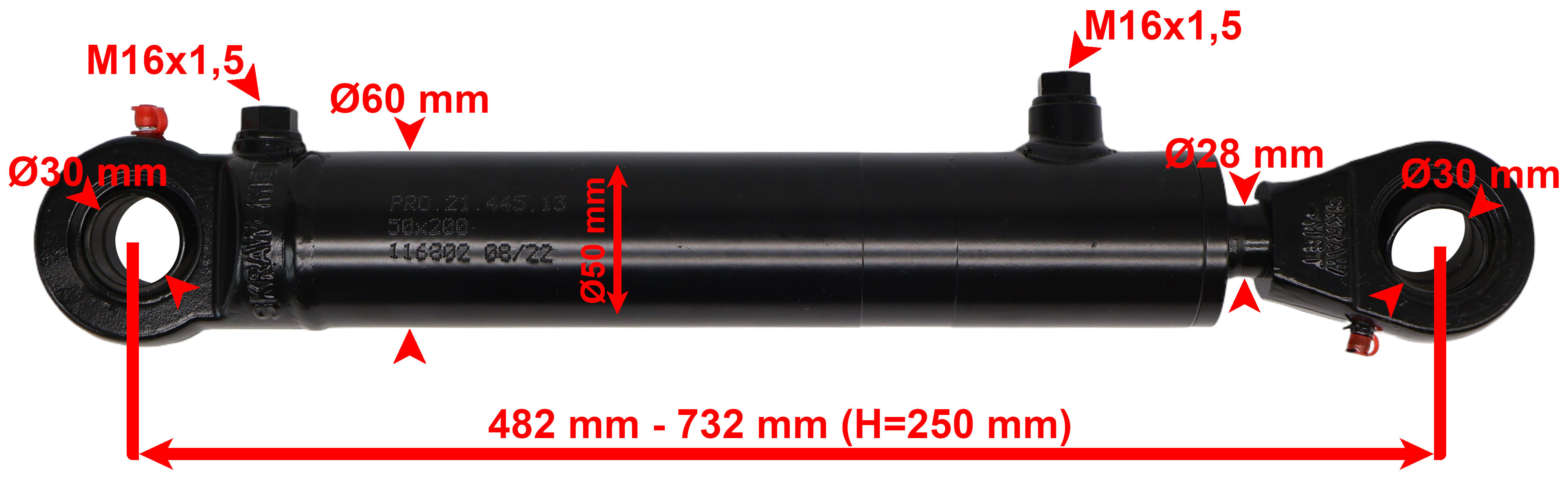 Całkowita długość siłownika po rozłożeniu mm: 732mm
