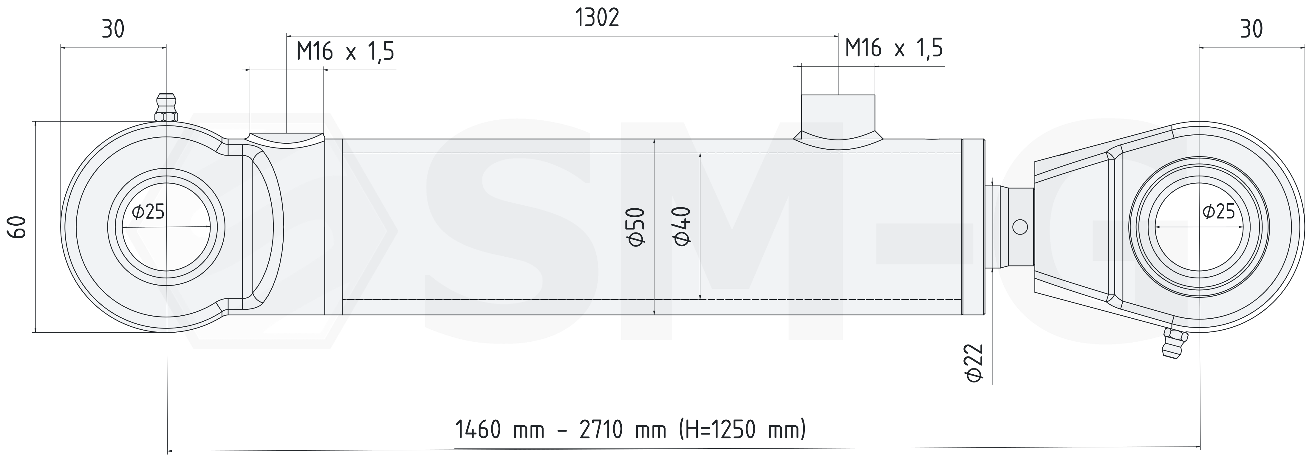 Długość siłownika złożonego mm: 1460mm