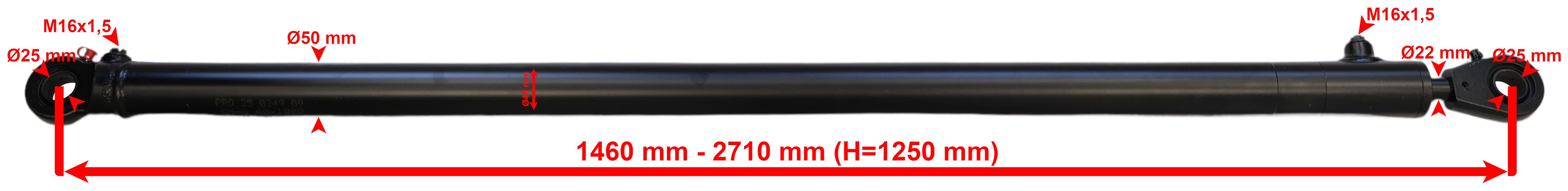 Całkowita długość siłownika po rozłożeniu mm: 2710mm