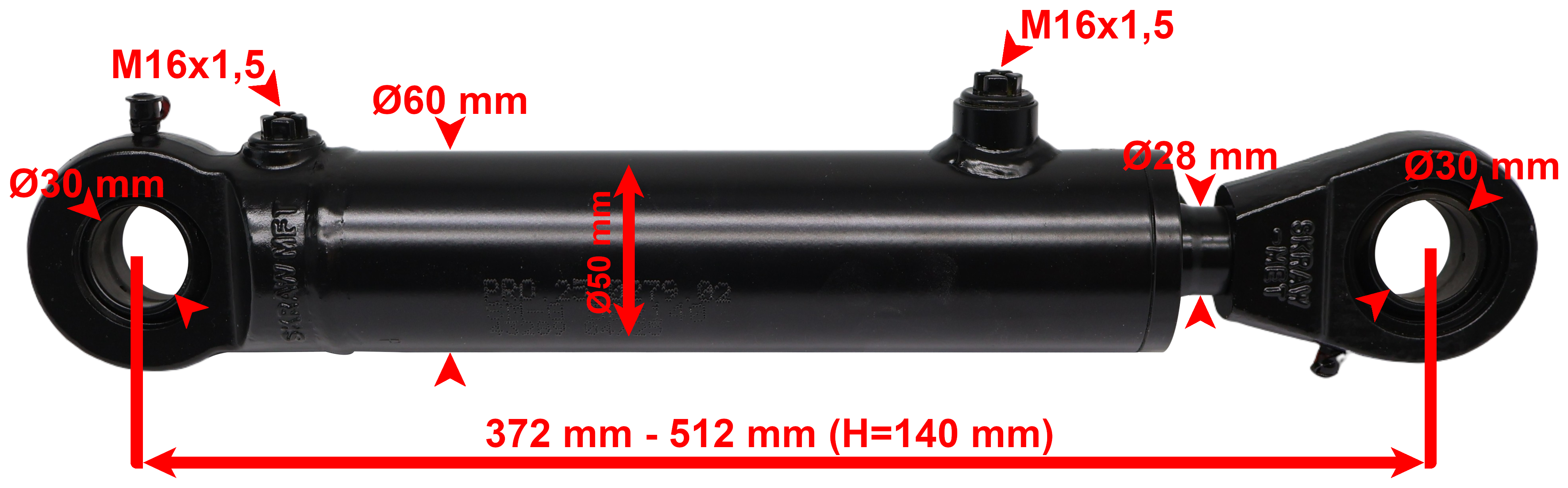 Całkowita długość siłownika po rozłożeniu mm: 512mm