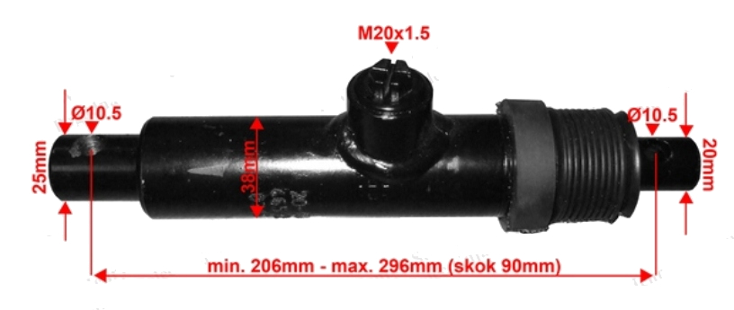 Całkowita długość siłownika po rozłożeniu mm: 296mm