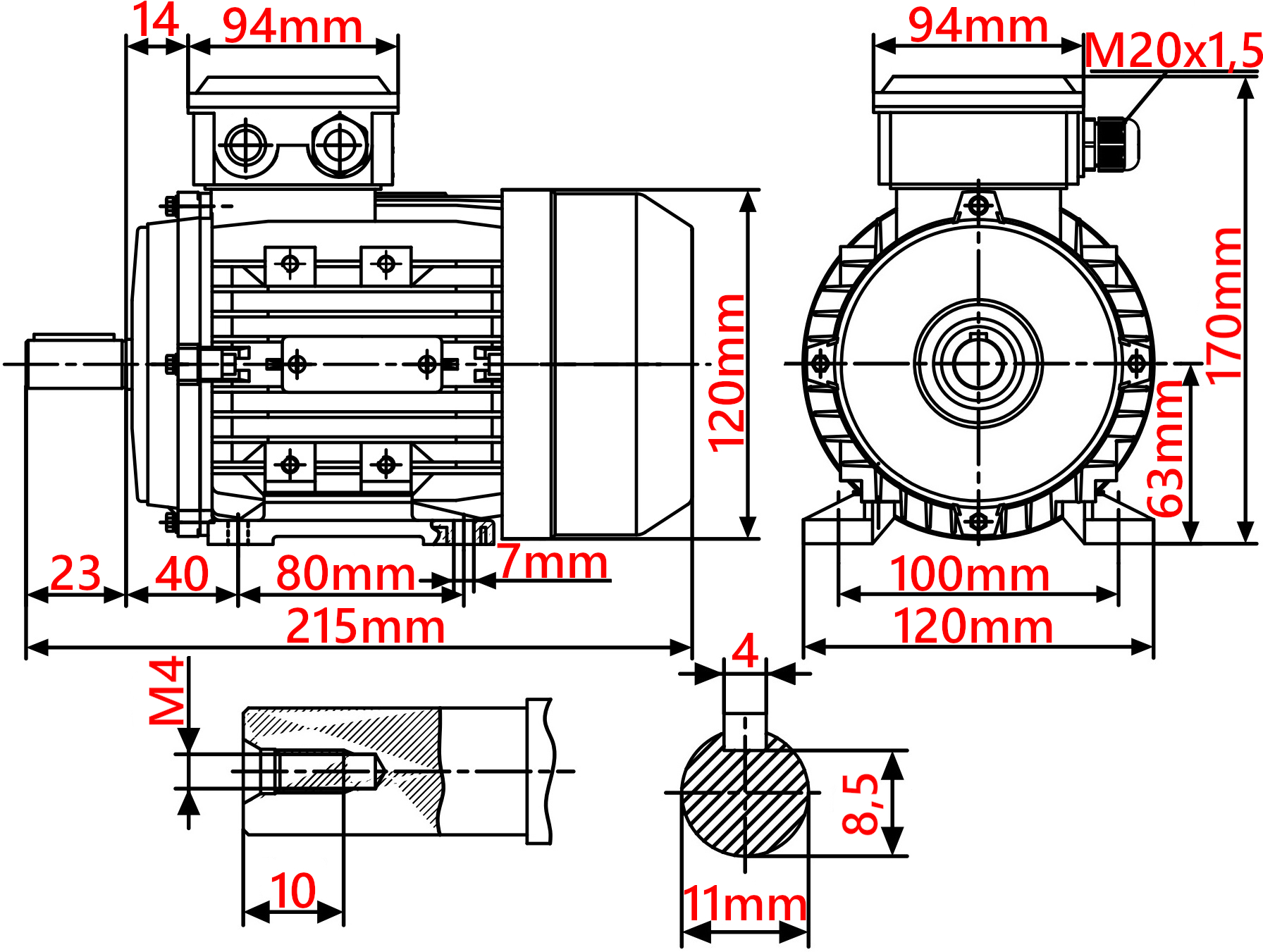 - Rozstaw łap mocujących: 80 mm x 100 mm