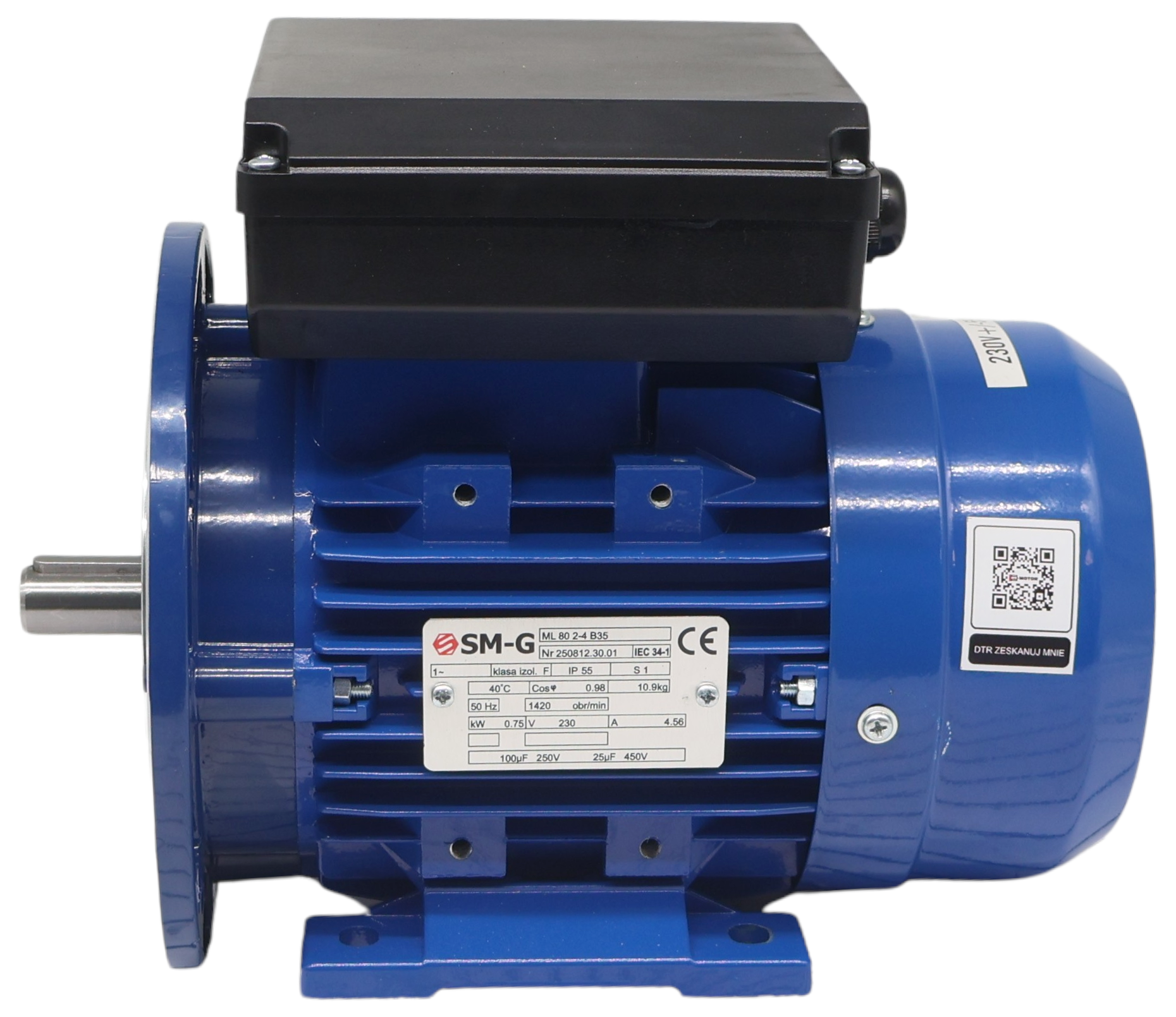 pracy i rozruchuBardzo dobrej jakości jednofazowy silnik indukcyjny — parametry znacznie przewyższają najtańsze chińskie produkty na rynku.
