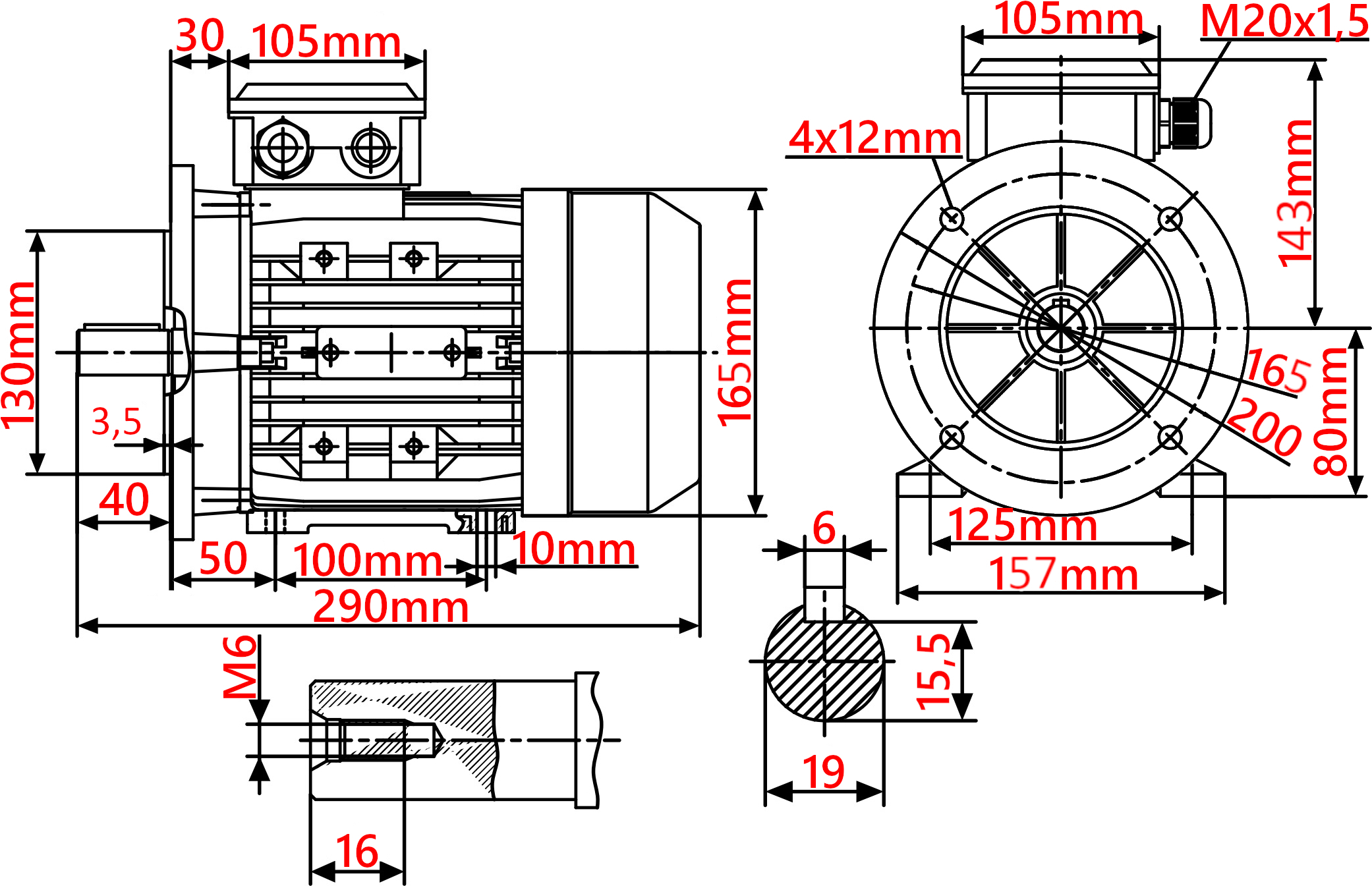- Rozstaw łap mocujących: 100 mm x 125 mm