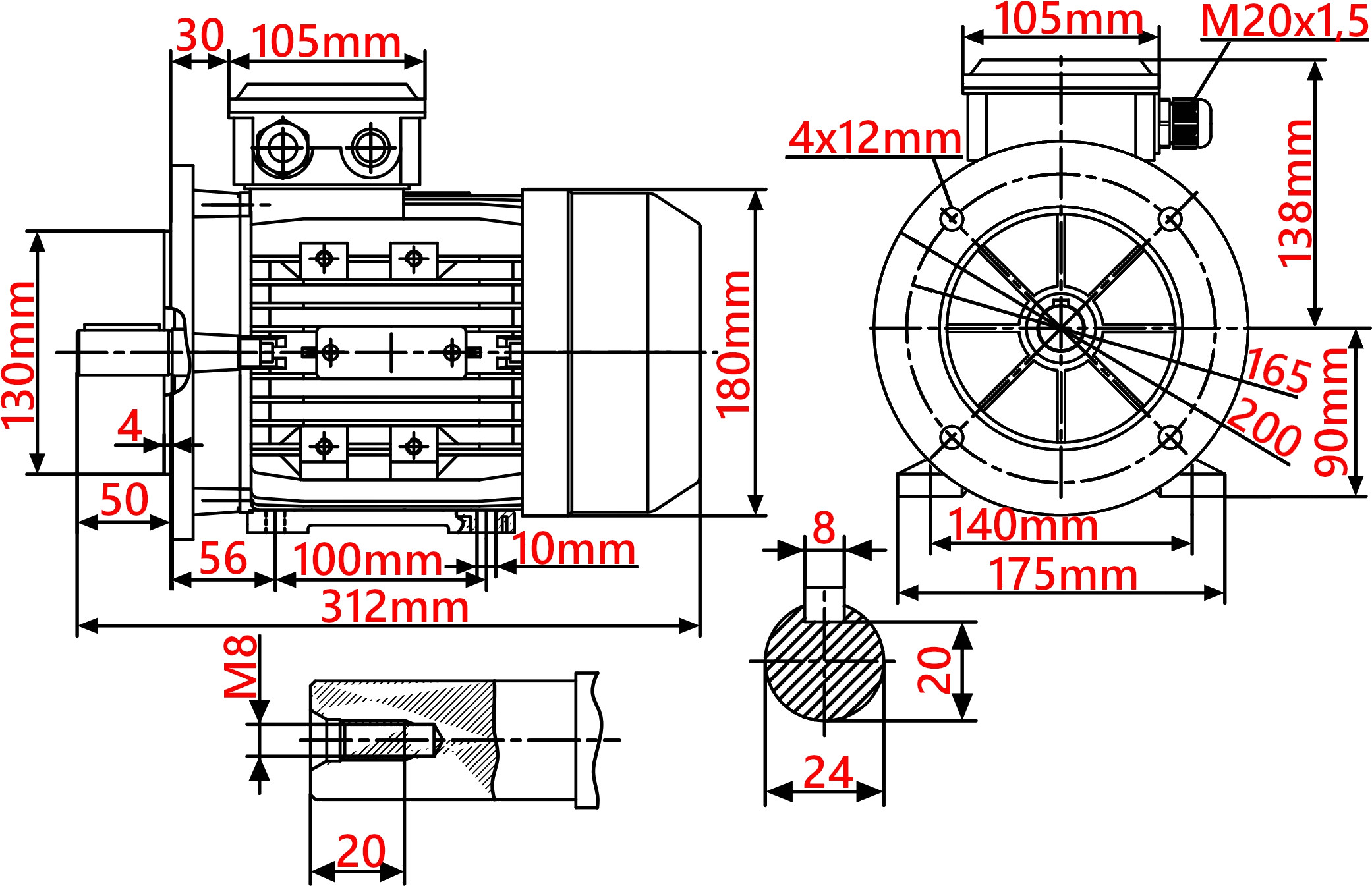 Dedykowany do redukowania napędu silników elektrycznych MS 90 z kołnierzem mocującym (B5/B35) oraz wałkiem napędowym Φ24 mm.
