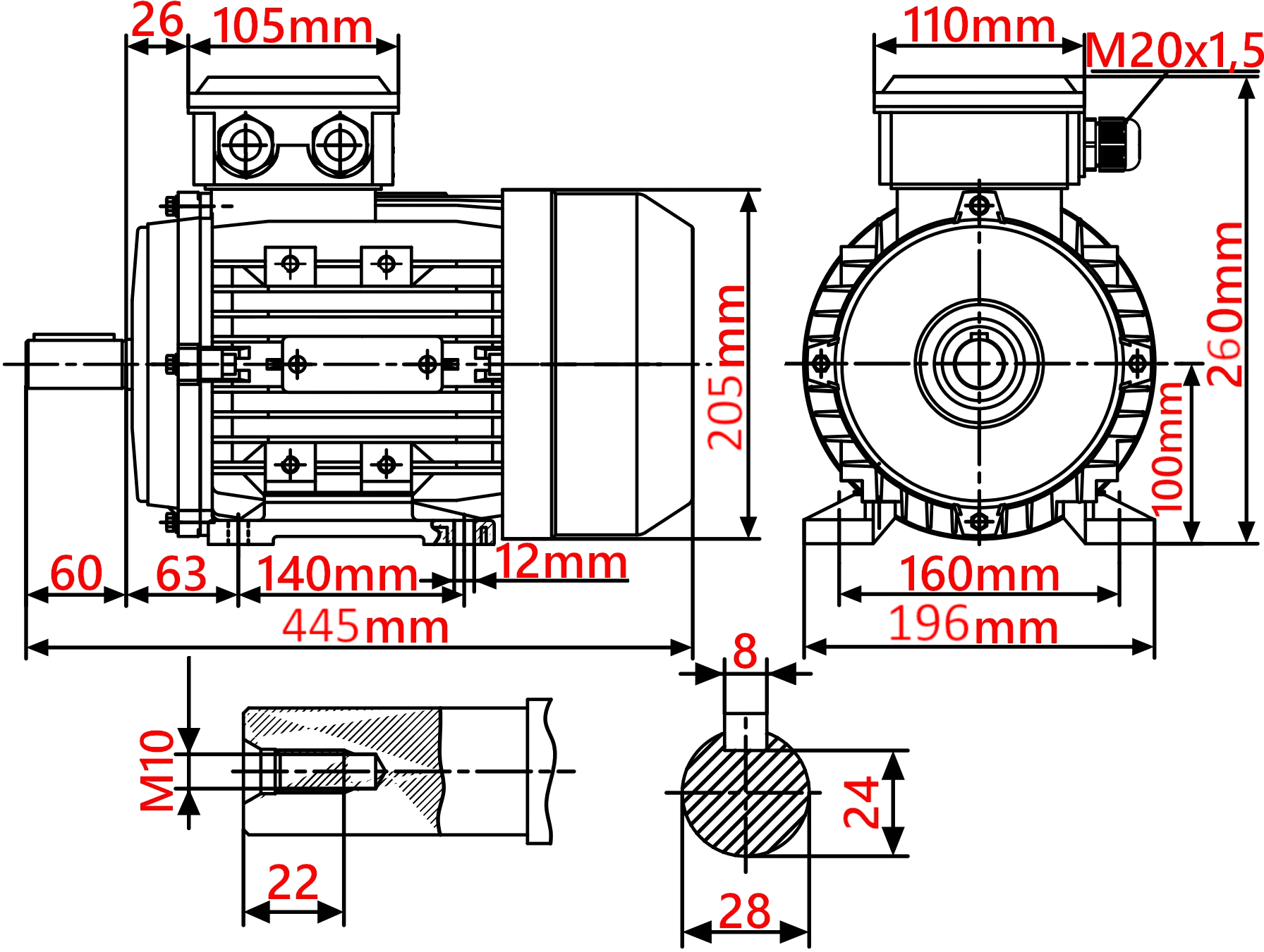 - Rozstaw łap mocujących: 140 mm x 160 mm