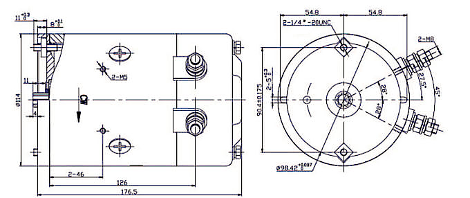 Elektryczny silnik prądu stałego dla hydraulicznego agregatu.