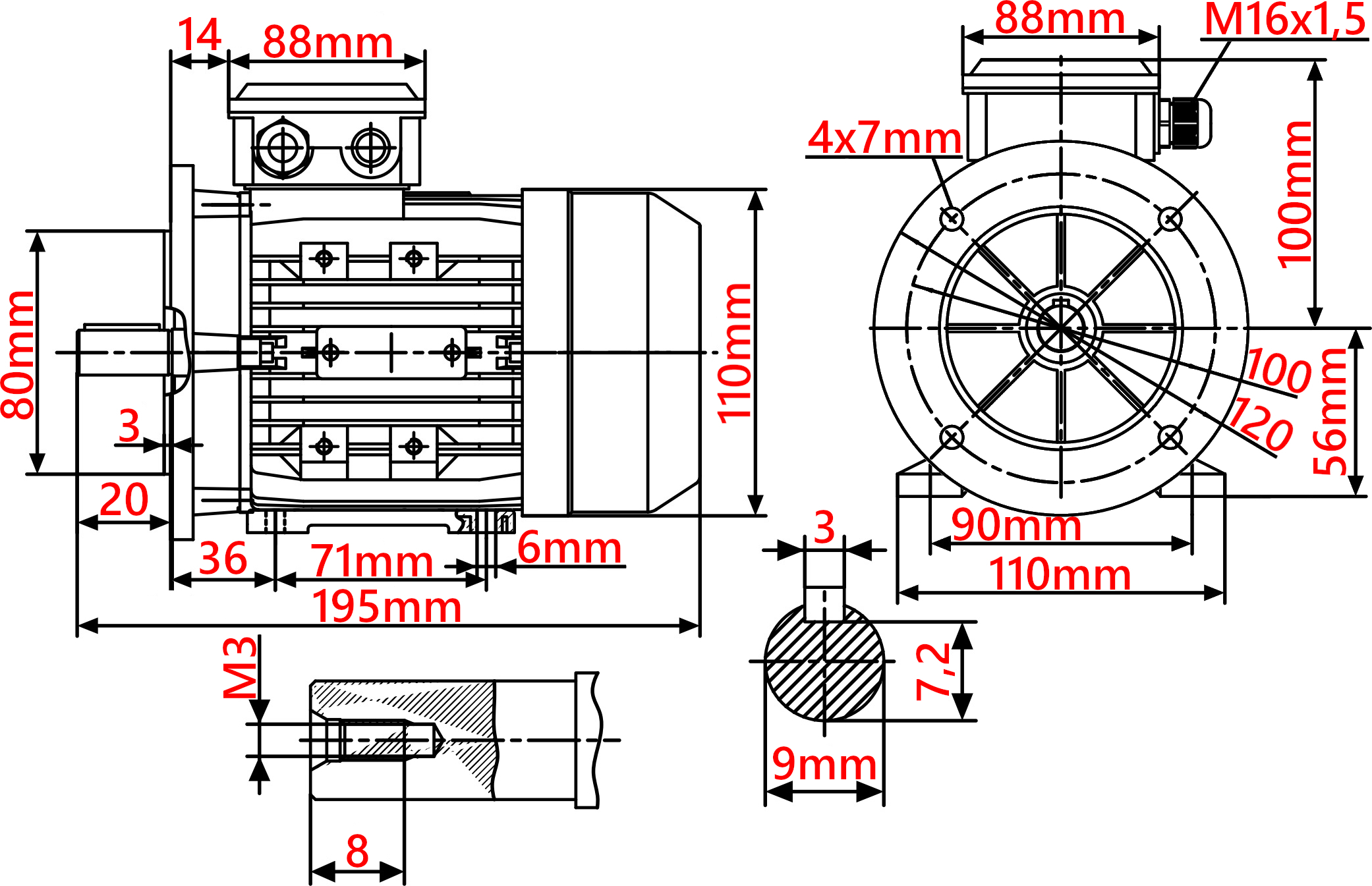 - Rozstaw łap mocujących: 90 mm x 71 mm