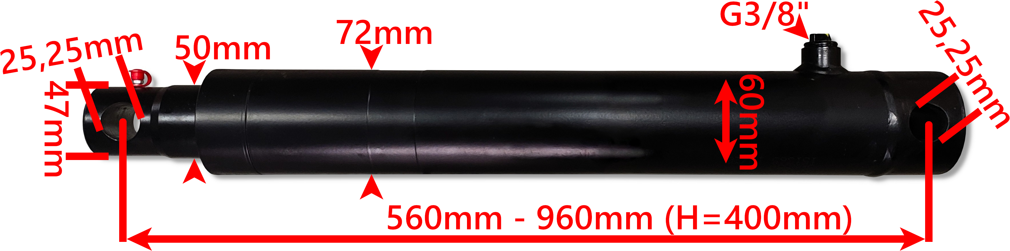 Całkowita długość siłownika po rozłożeniu mm: 960mm