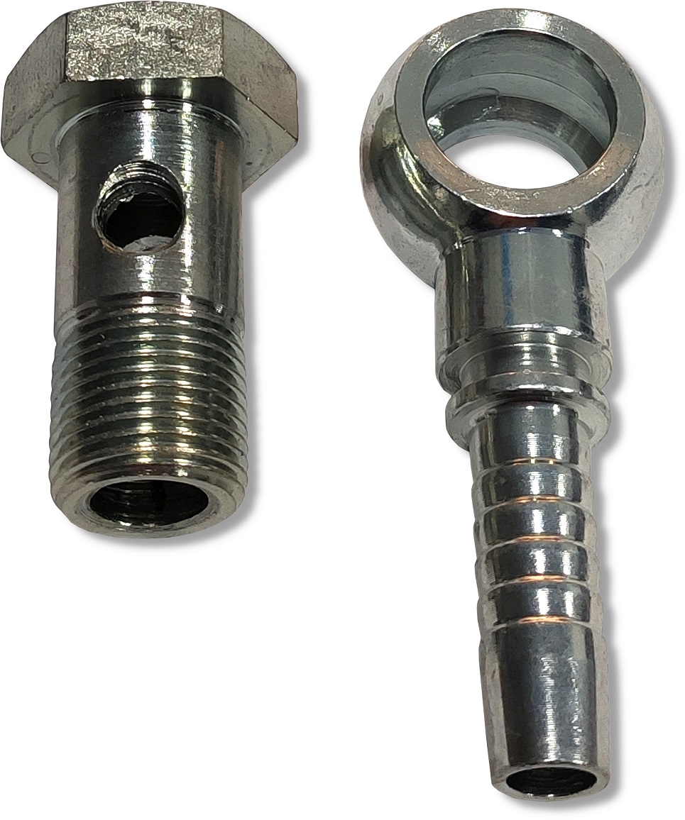 Końcówki oczkowe nazywane również końcówkami "banjo" - stosowane do zakuwania elastycznych węży hydraulicznych, aby umożliwić połączenie przewodów z pozostałymi elementami.