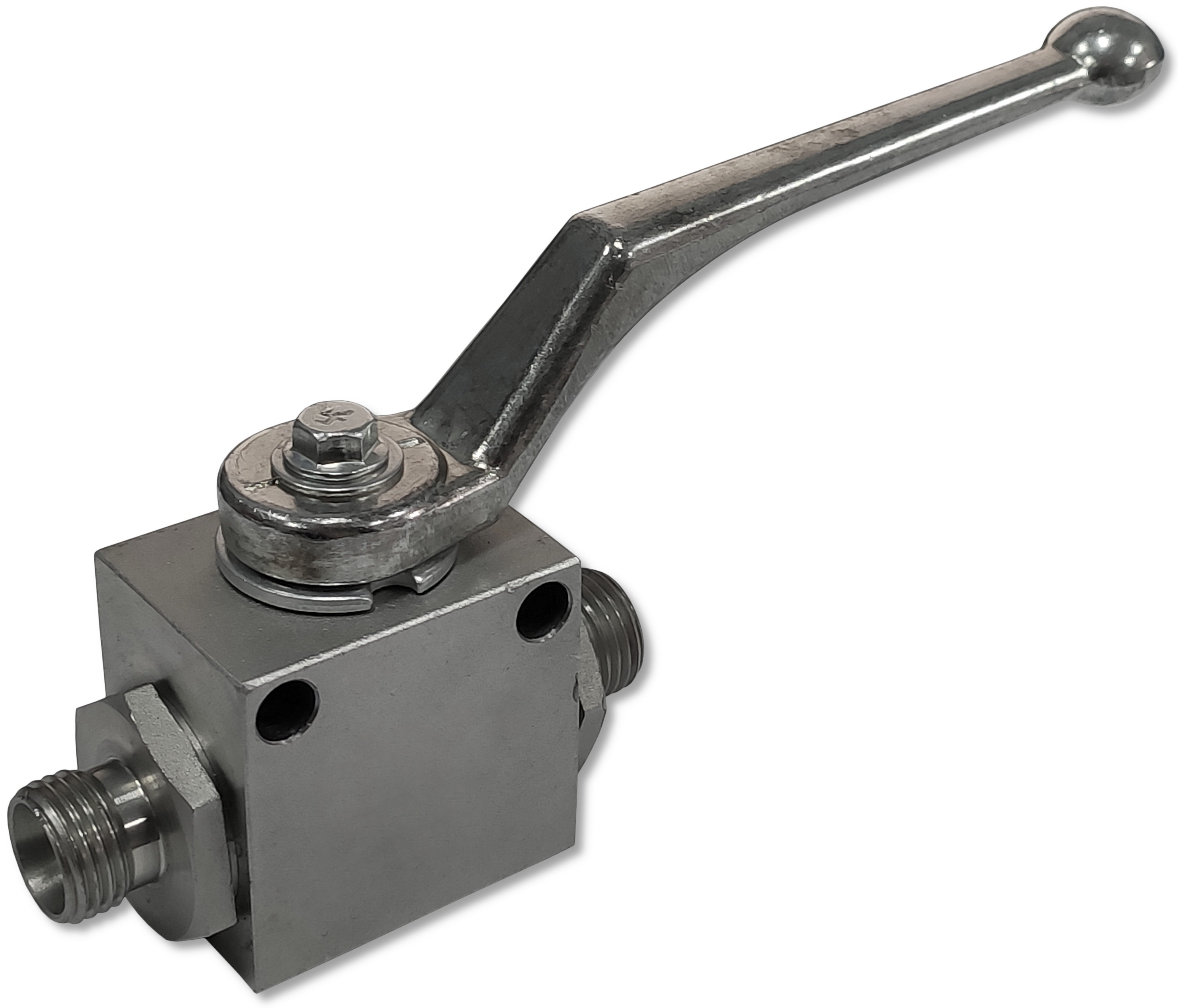 Zawór kulowy wysokiego ciśnienia - obraca się o 90 stopni - służy głównie do zamykania i otwierania przepływu cieczy (np. oleju hydraulicznego) w układzie hydraulicznym.