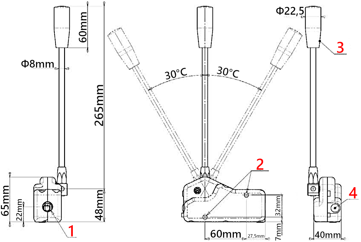 W rozdzielaczu 3 sekcyjnym potrzebne będą trzy takie dźwignie i trzy linki. Dźwignie mogą być łączone i skręcane ze sobą tworząc jednolity panel sterujący.