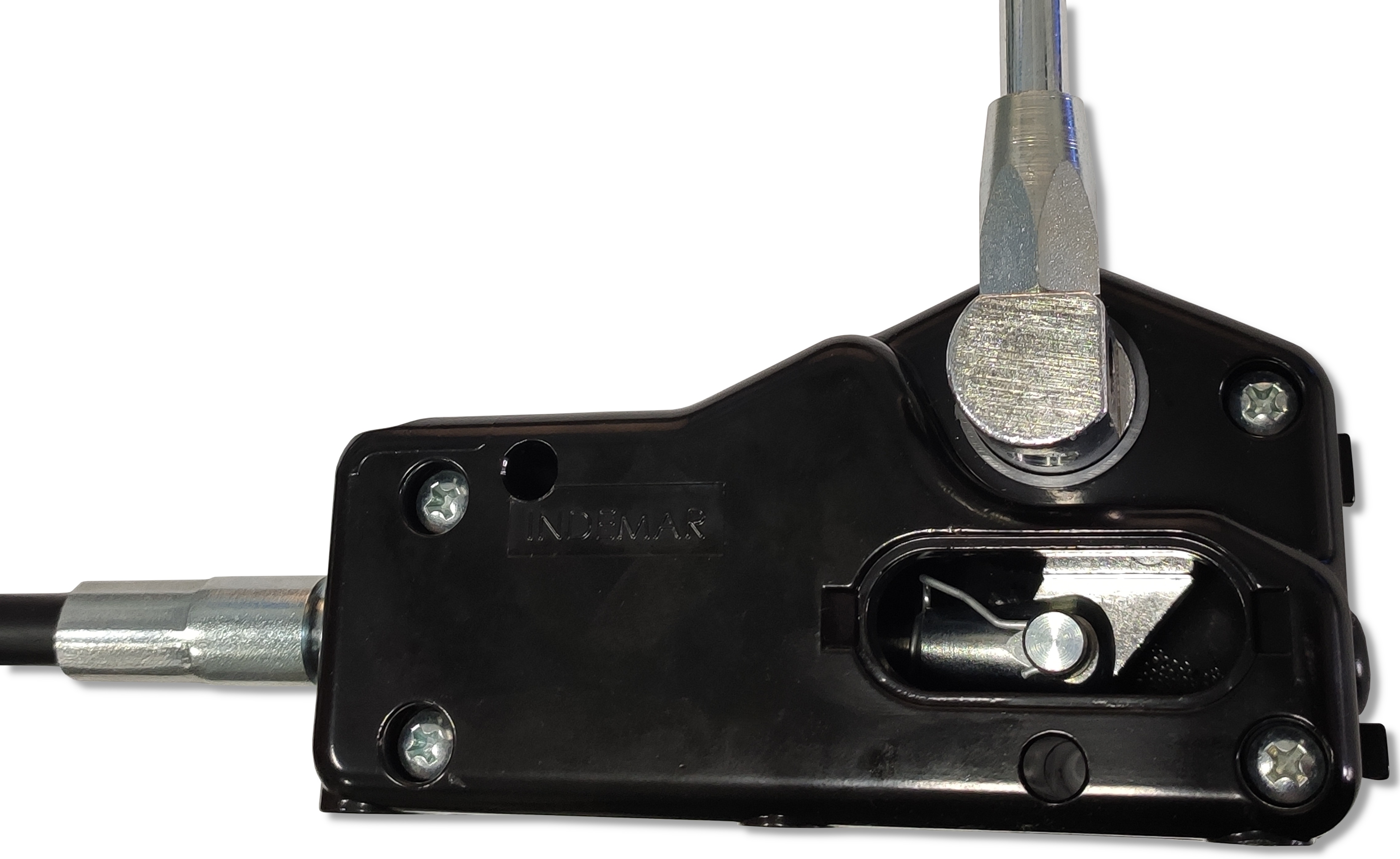 Solidna dźwignia umożliwiająca mechaniczne sterowanie dwukierunkowymi hydraulicznymi zaworami sterującymi TURA (ładowacza) przy pomocy linki na widełki (która jest w zestawie).