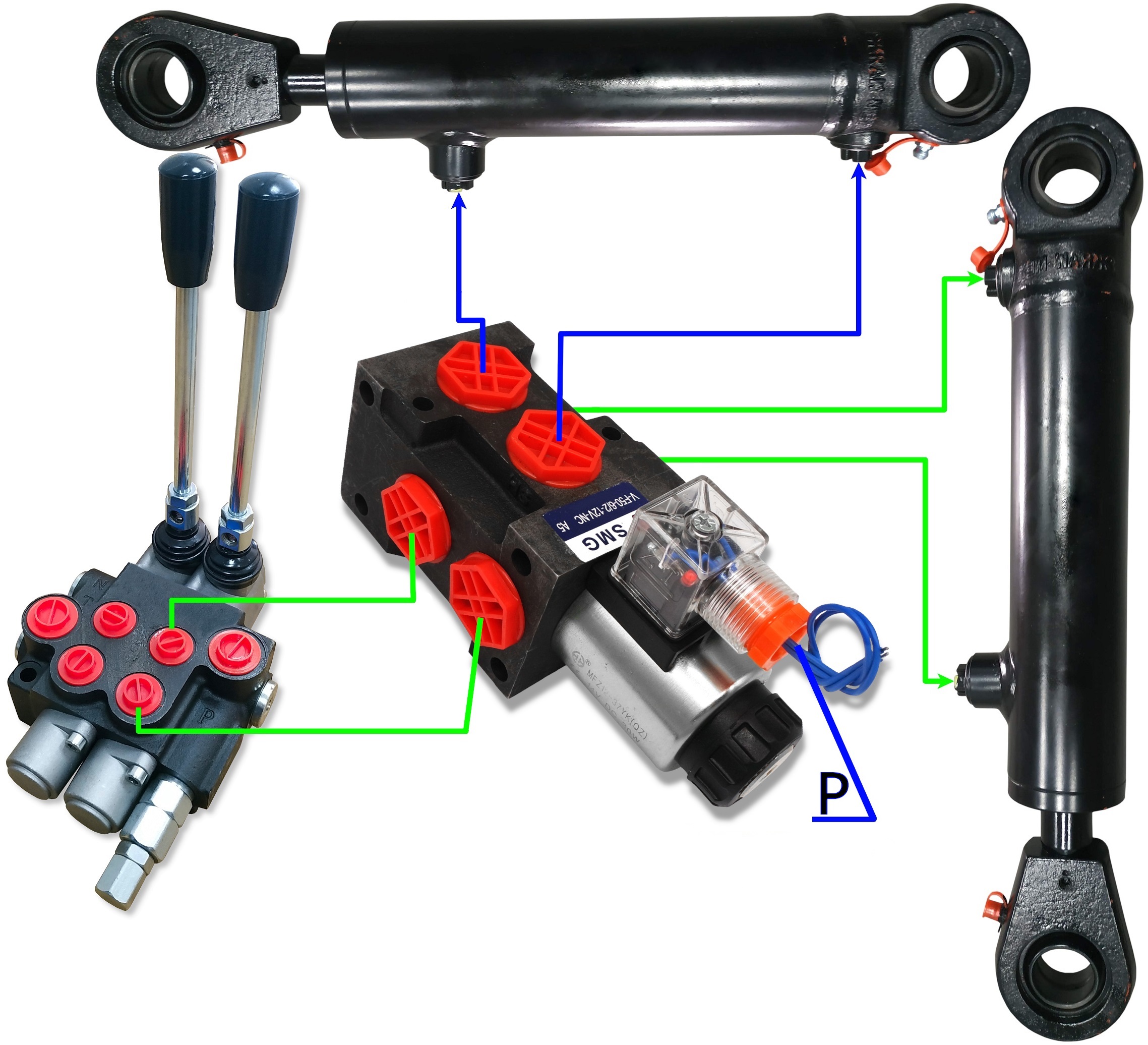 Elektrozawór ten jest idealnym rozwiązaniem gdy w wykorzystywanym rozdzielaczu hydraulicznym (w celu sterowania siłownikiem) zabraknie nam dodatkowej sekcji do sterowania kolejnym siłownikiem.