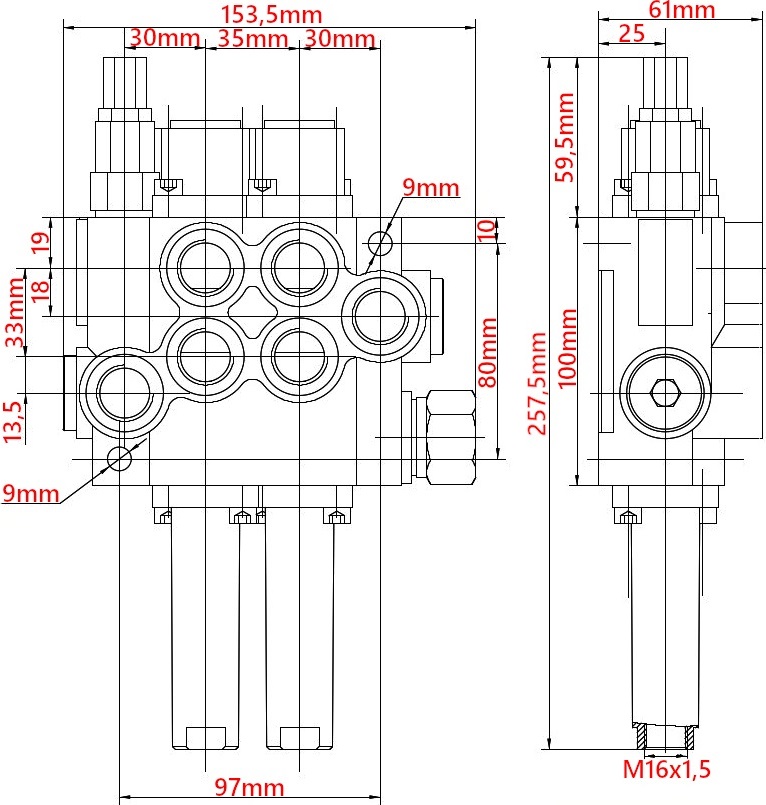 Rozdzielacz doskonale sprawdza się w maszynach i urządzeniach zasilanych hydraulicznie.