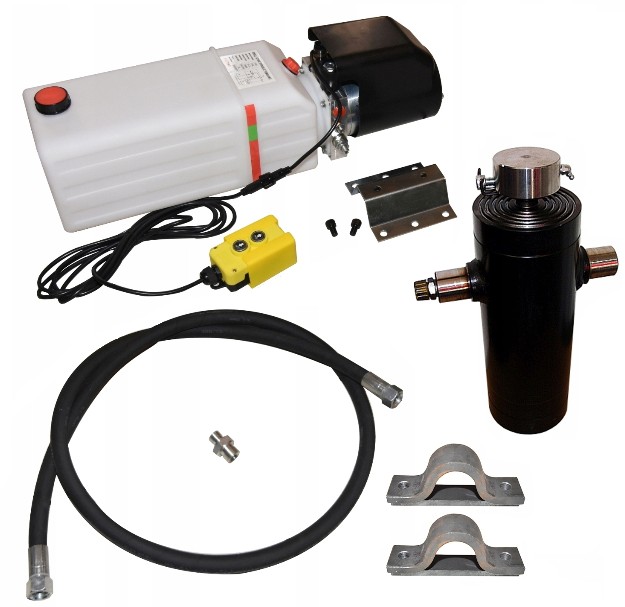 siłownikiem hydraulicznym polskim o skoku 1237 mm.Zestaw doskonale sprawdza się w zabudowach z wywrotem w samochodach dostawczych, ciężarowych, lawetach i przyczepach.