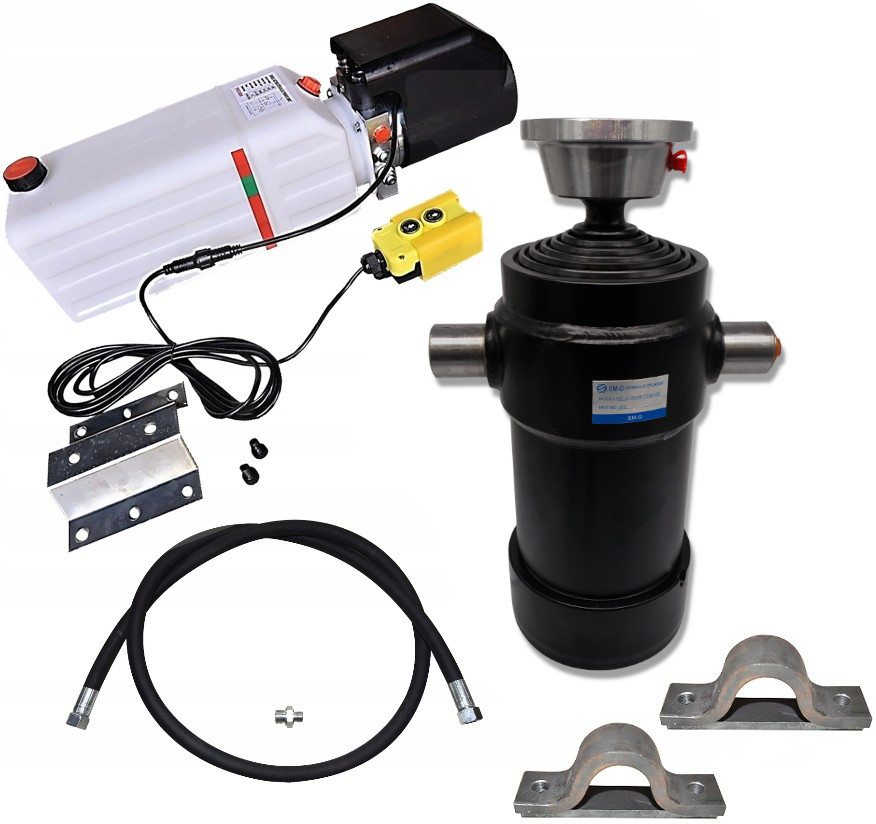 agregatem-pompą, siłownikiem hydraulicznym o skoku 1250 mm.Zestaw doskonale sprawdza się w zabudowach z wywrotem w samochodach dostawczych, ciężarowych, lawetach i przyczepach.
